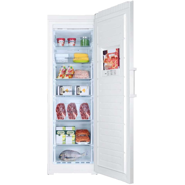 Categoria do produto: Arca congeladora vertical | Instalação: Instalação livre | Potência Máxima absorvida (kW): 185 | Sistema frost free: No Frost Total | Processo de descongelação: Frost-Free | Painel | Frequência (Hz): 50 | Voltagem (V): 220-240 | Corrente (A): 1.1 | Temperatura ajustável | Comandos: Botões soft touch ControlVision info LED | Localização dos comandos: Painel de controlo exterior | Alarme de porta aberta | Cor das pegas: Branco | Dobradiça da porta: Direita | Portas reversíveis | Luz: Led | Número de gavetas/cestos: 7 | Classe Energética: E | Consumo anual de energia: 242 | Classe climática: SN | Classe de ruído: C | Classificação de estrelas: 4 | Capacidade total (l): 262 | Capacidade total do compartimento de congelação (l): 262 | Autonomia em caso de falha de energia (h): 10 | Capacidade de congelação (kg / 24h) - NOVO (2010/30 / CE): 20 | Altura: 1865 | Largura: 595 | Profundidade: 665 > arca vertical61490NovoProduto Limitado€ 614.90