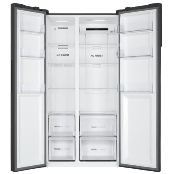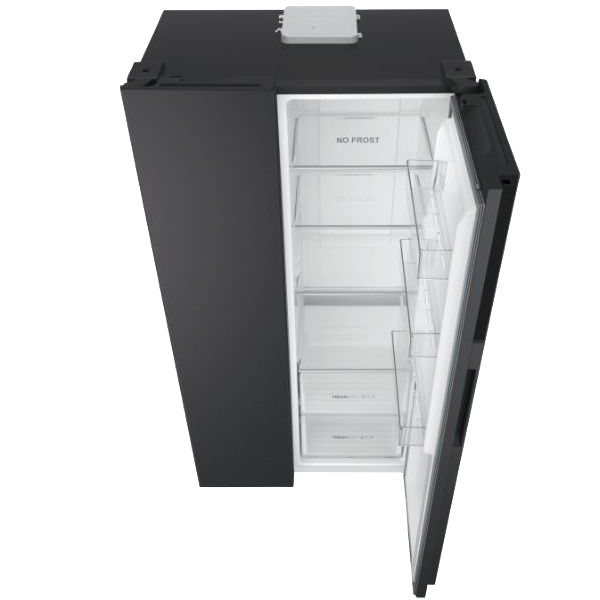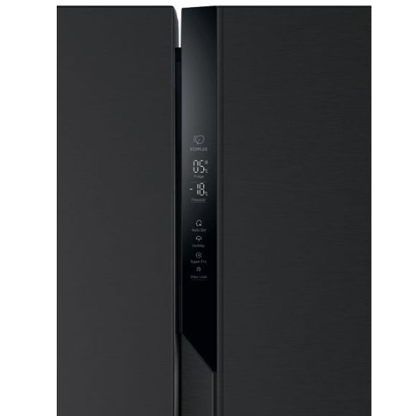 Com IVAInstalação: Instalação livreCategoria de Produto: FrigoríficoTipo de produto: Side by sideTecnologia de frio: No FrostPainelColuna de circulação de ar MultiflowProcesso de descongelação da secção do frigorífico: AutomáticoProcesso de descongelação da secção do congelador: Automatica no frostJunta de borracha: EmpurrarCorrente (A): 1.8Frequência (Hz): 50Voltagem (V): 220-240Interface de comando: EletrónicoLocalização dos comandos: Painel comandos na portaIndicador de porta aberta - frigorífico: AcústicoTemperatura ajustável: Controlos independentes do refrigerador e do congeladorCongelação rápidaFériasSmart coolFunção Super refrigeraçãoCor Material do corpo: BlackNúmero de gavetas de congelação: 2Frigorífico com ventilador internoMaterial das prateleiras: VidroPrateleiras da porta: Perfil em silverMaterial das prateleiras da porta: Smooky transparent food plasticAcabamento das prateleiras: Perfil em silverNúmero total de prateleiras da porta: 6Pegas: Pegas integradas confortáveisLuz: LedNúmero de gavetas: 2Número de suportes para os ovos: 2 transparentesNúmero de covetes para gelo: 1 brancoNúmero de prateleiras ajustáveis no compartimento do frigorífico: 2Classe Energética: EClasse de ruído: CNível de ruído dB(A): 38Consumo anual de energia: 317Classe climática: SNCapacidade total do compartimento de refrigeração (l): 337Capacidade total do compartimento de congelação (l): 191Capacidade total (l): 528Classificação por estrelas: 4Autonomia em caso de falha de energia (h): 5Capacidade de congelação (kg): 10Altura: 1775mmLargura: 908mmProfundidade: 647mm