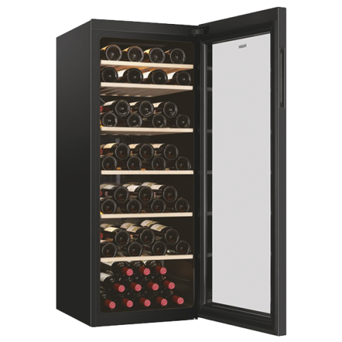 Tipo: MonozonaCor material da porta: Grey Tint VidroClasse de eficiência energética: GClasse de ruído: CNúmero de garrafas: 84Capacidade líquida total: 198 LNível de ruído: 37 dBAComandos: Eletrónicos na portaInterface: Touch LedFecho da porta Sistema antivibração Alarme de temperatura excessiva: Led + sonoroCor material da porta: Grey Tint VidroMoldura da porta: PretoCor material do corpo: PretoPegas: Integradas em pretoNúmero de prateleiras ajustáveis: 6+1Material das prateleiras: Madeira tipo faiaIluminação: Top Led + led lateralFiltro de carbonoSistema de descongelação (A=Automática M=Manual): A Tipo de frio: ecológico híbridoVentiladoNº de compressores: 1Temperatura: 5~20Termostato ajustável Consumo de energia anual: 149 kWhConsumo de energia 24h: 0,41 kWhControlo de humidade: automáticoVisor de humidade Classe climática: SN (10º-32º)Gás refrigerante: R600aPés ajustáveis rodas: 2 2Portas reversíveis Dimensões do produto AxLxP: 1270X497X585 mm
